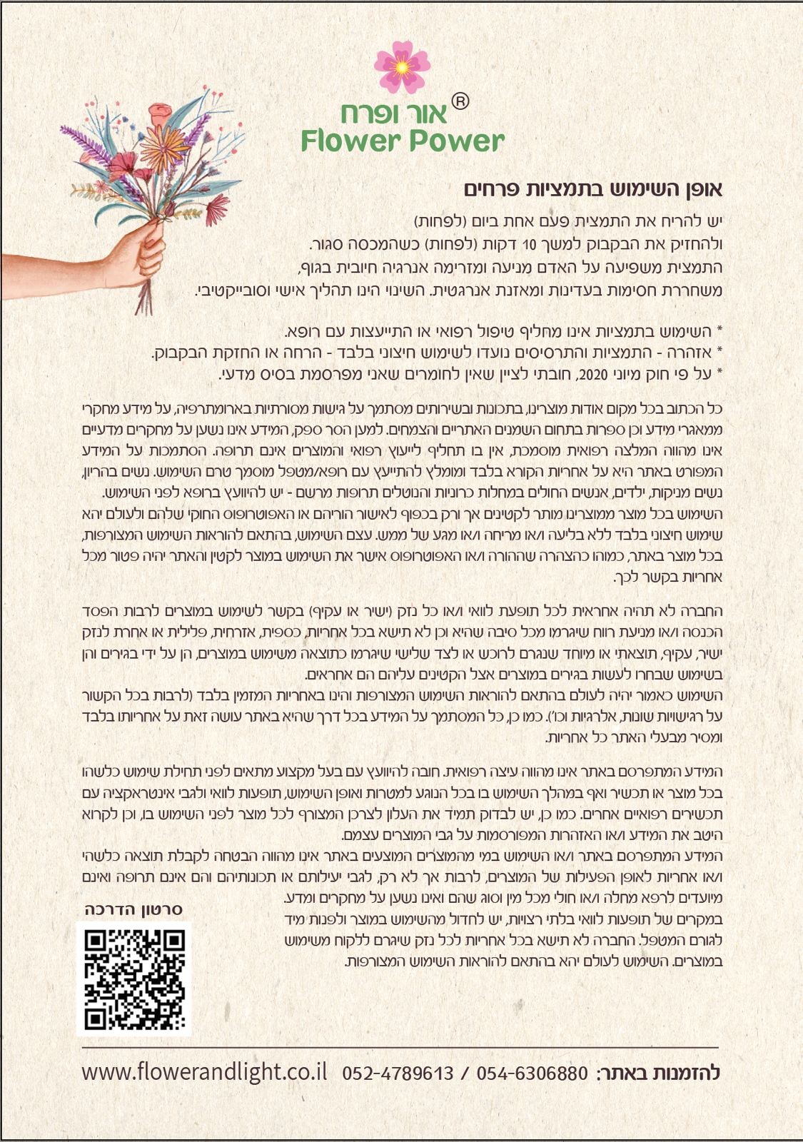 הפרחים תומכים בגוף, בנפש וברוח, ומזכירים לחזור לאיזון ולהרמוניה פנימית. זהו מרחב של יופי ויצירה, של חיבור לטבע, לשקט פנימי ולכוחות הריפוי הטבעיים שלנו. מרחב שמאפשר שינוי תודעה – דרך מגע, נוכחות, ואהבה פשוטה למה שיש.